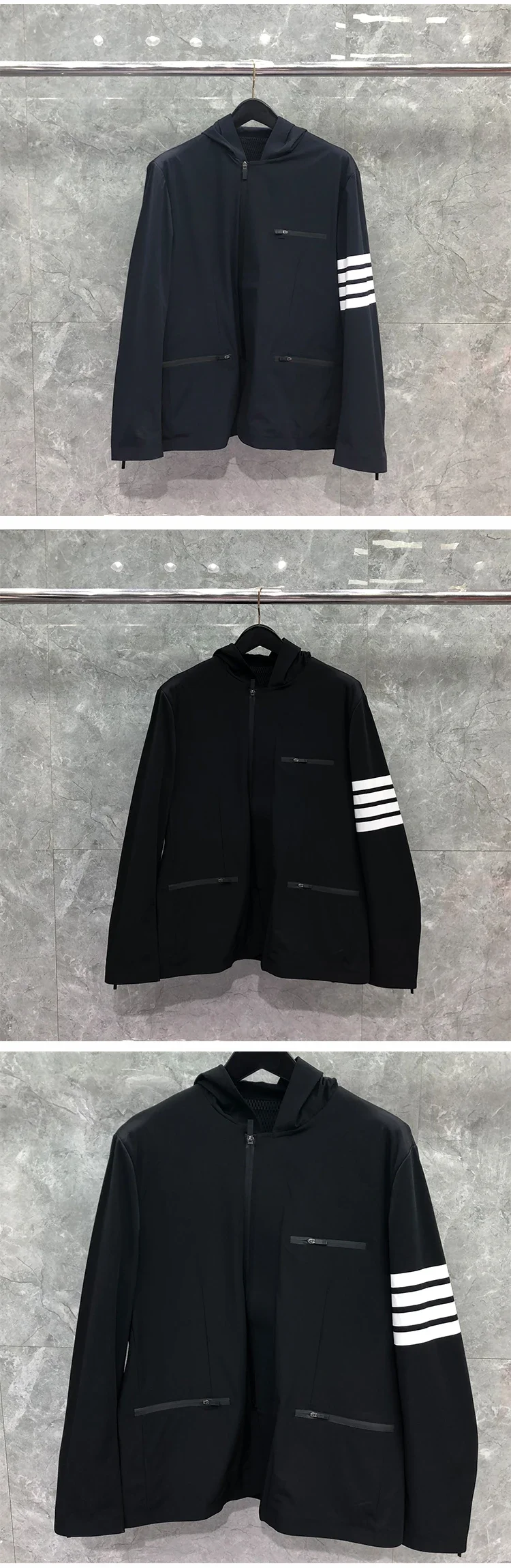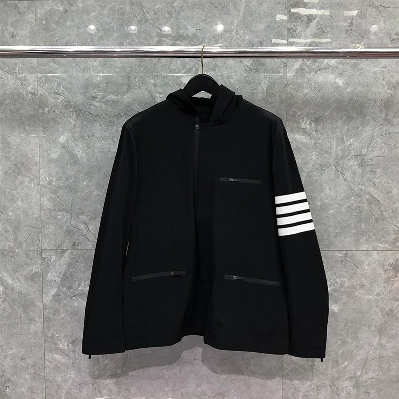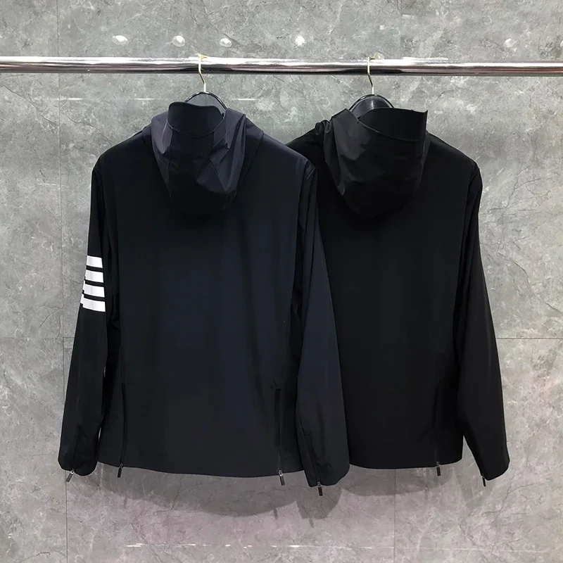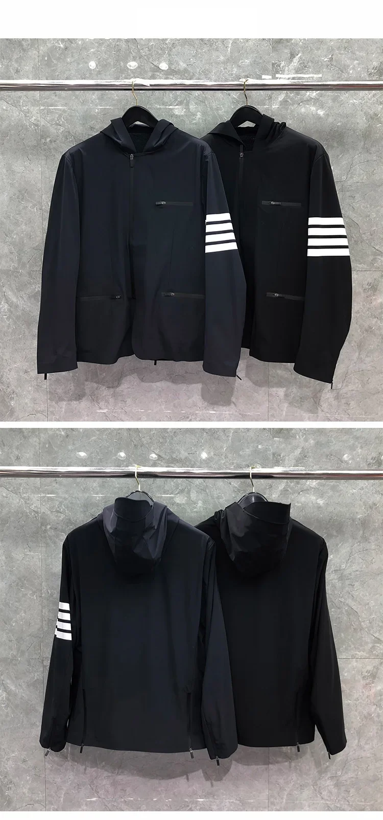 TB-Abrigo con capucha a rayas para hombre, chaqueta fina a prueba de viento, diseño coreano con cremallera, impermeable, para correr, primavera y otoño