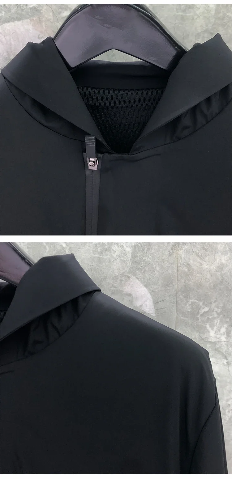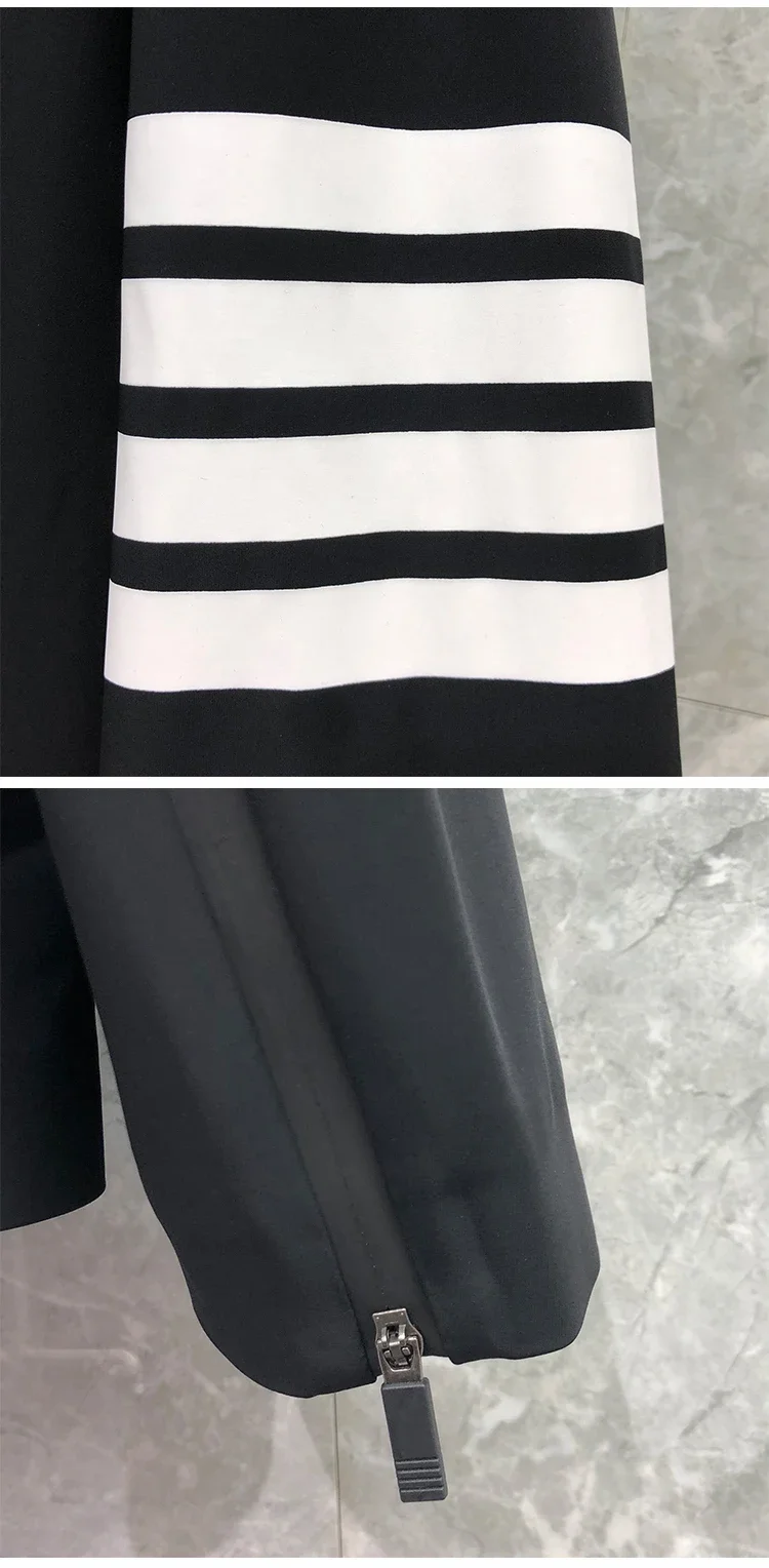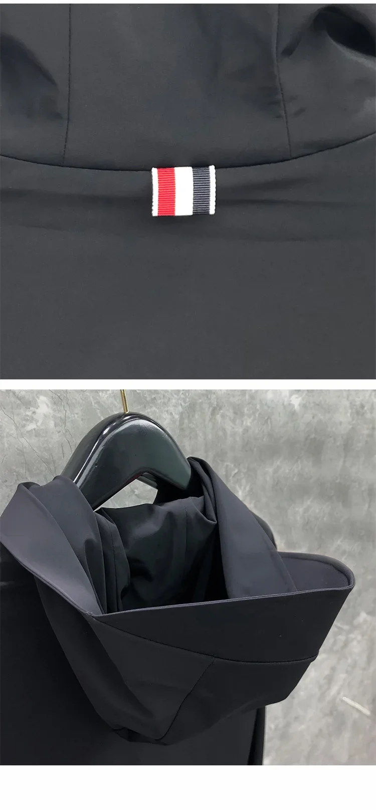 TB-Abrigo con capucha a rayas para hombre, chaqueta fina a prueba de viento, diseño coreano con cremallera, impermeable, para correr, primavera y otoño